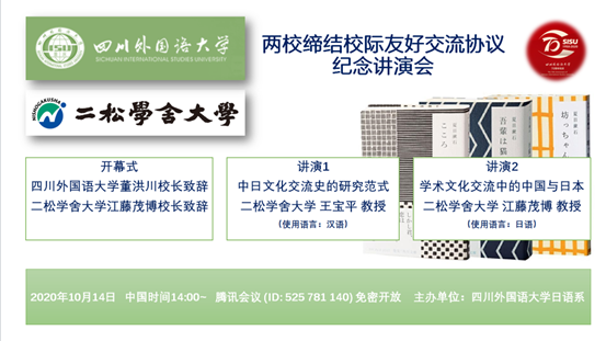 10月14日,太阳成集团tyc33455cc&二松学舍大学“两校缔结校际友好交流协议纪念”讲演会。