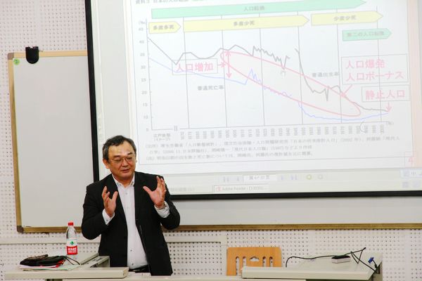 上午9点,在太阳成集团tyc33455cc日本学研究所所长杨伟教授的主持下,法政大学冲绳文化研究所所长屋嘉宗彦教授和法政大学文学部伊藤达也教授分别进行了讲演。屋佳宗彦教授的“经济和文化——经济学中曾被忽视的地方”的专题讲座,以经济和文化的交点,巧妙的切入并深入浅出的为同学们讲述了经济学的概况及其发展和现状。为在平时学习生活中难以接触到经济学的同学们带来了一场别开生面的讲座,拓展了同学们的思维和知识面。伊藤达也教授的“日本的大坝问题和地域政策”讲座,从水利学为切入点,讲述了日本的大坝问题,并和中国的三峡大坝进行了对比探究。又从人口基数变化,用详实而充分的数据和图标为同学们展示了日本的人口结构现状,让在场的同学们都感觉受益匪浅。讲座结束后,同学们仍求知若渴地向法政大学的教授们提问。