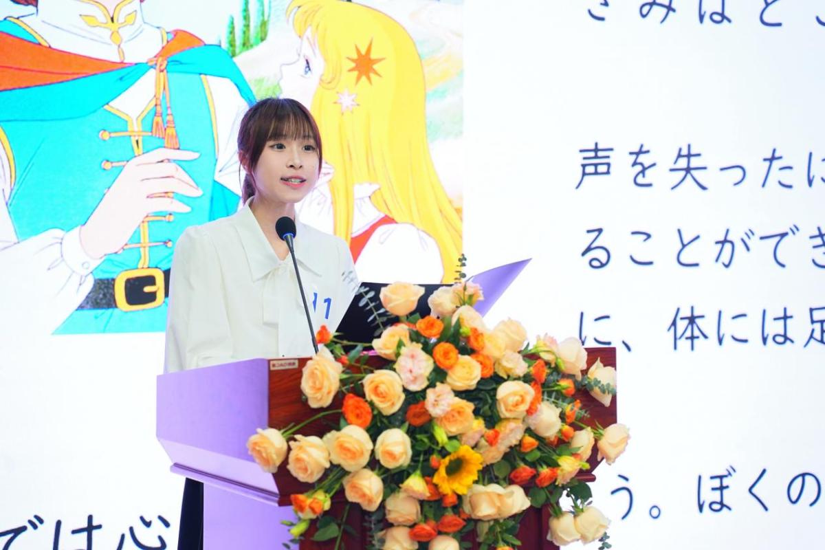 比赛分为日语专业二年级组、日语专业三年级组和非专业组三个组别。专业组设自选朗读与即兴朗读两个环节;非专业组只设自选朗读环节。公司2023级范懿文同学和2022级郑静妍同学在专业组别的比赛中语音标准纯正,语调自然,表达流畅,发挥稳定,脱颖而出,分别获得大二组、大三组特等奖。辅修日语2022级余乐怡同学沉着应对,表现出色,征服了评委和现场观众,夺得非专业组二等奖。