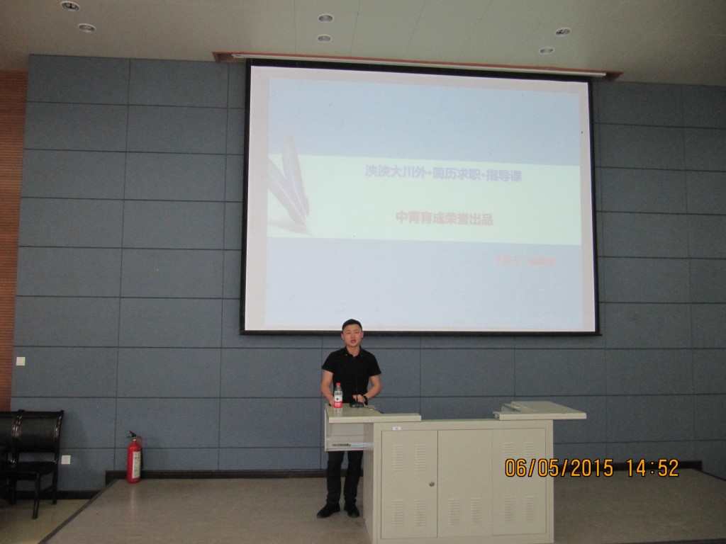 2015年6月5日,日语系大三的同学们在B栋报告厅参加了主题为《能力提升与面试技巧》的就业指导课。此次讲座由日语系主办,由中青育成专家团特聘讲师庞老师讲授,旨在使员工明白求职及企业面试的本质过程,同时学会面试的基本技巧。两个小时的课结束后,同学们意犹未尽,而对即将面对的求职面试有了更深的认识和思考
