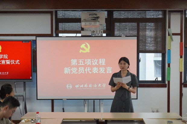 新党员代表张沥引同志和熊颖同志分别发言。两位同志均表态,要以此为新起点、新标准,坚持用习近平新时代中国特色社会主义思想凝心铸魂,坚守入党初心,践行党员标准,以实际行动落实党的二十大精神,以优异成绩为党旗增光添彩。