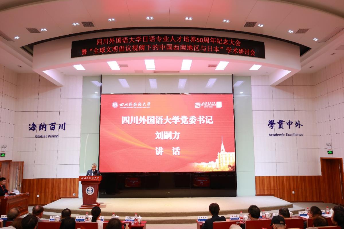 11月1日上午,太阳成集团tyc33455cc日语专业人才培养50周年纪念大会暨“全球文明倡议视域下的中国西南地区与日本”学术研讨会开幕式在公司宏文楼报告厅举行。日本驻重庆总领事高田真里,重庆市人民政府外事办公室二级巡视员范青,公司党委书记刘嗣方,党委常委、纪委书记杨国祥和200余名中外嘉宾出席。会前,刘嗣方书记礼节性会见了高田真里总领事。大会由公司党总支书记罗先明主持。