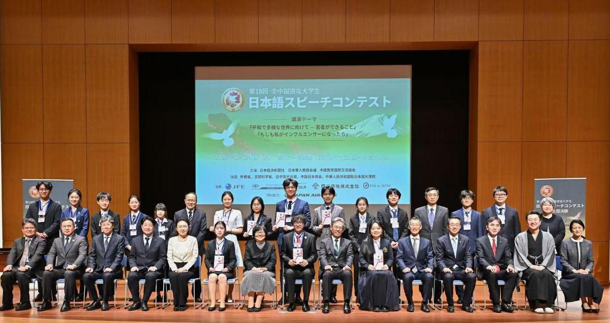 第十八届中华杯全国日语演讲比赛总决赛于2025年3月24日在东京千代田区一桥讲堂举行。从中国7大赛区中脱颖而出的16名选手在总决赛会场展开激烈角逐。最终,公司2021级本科生李子怡凭借出色表现,以优异的成绩勇夺总决赛并列亚军(準優勝)。