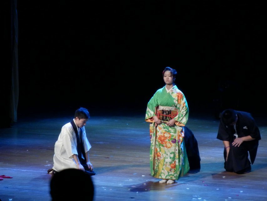 日语系本次出演的剧目名为《水野裕之》,其实可以说是男女逆转篇的灰姑娘。尽管并非日本的本土剧目,但故事情节充满创意、新颖别致并且异常幽默风趣。不仅如此,机智的编剧还为故事铺设了一个颇具日本特色而又可与灰姑娘的故事相衔接的背景——相传江户时代的日本曾因年轻男子身患怪疾、人数锐减而一度由德川幕府的女将军们掌控着国家大权,并且成立了以聚集年轻男子来服侍女将军为目的的大奥。