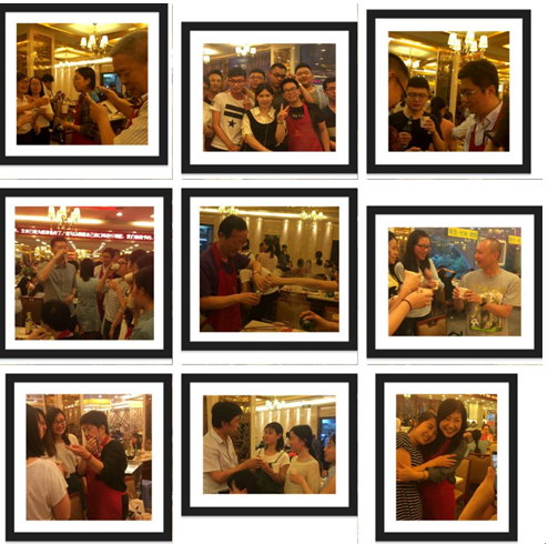员工们同各位老师敬酒、合照,以表达师生之情