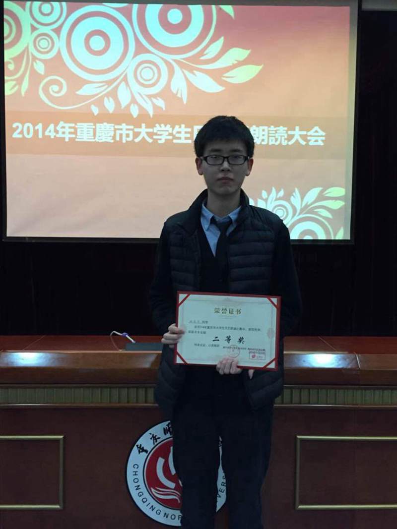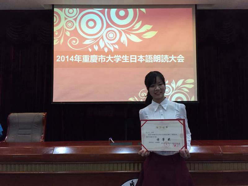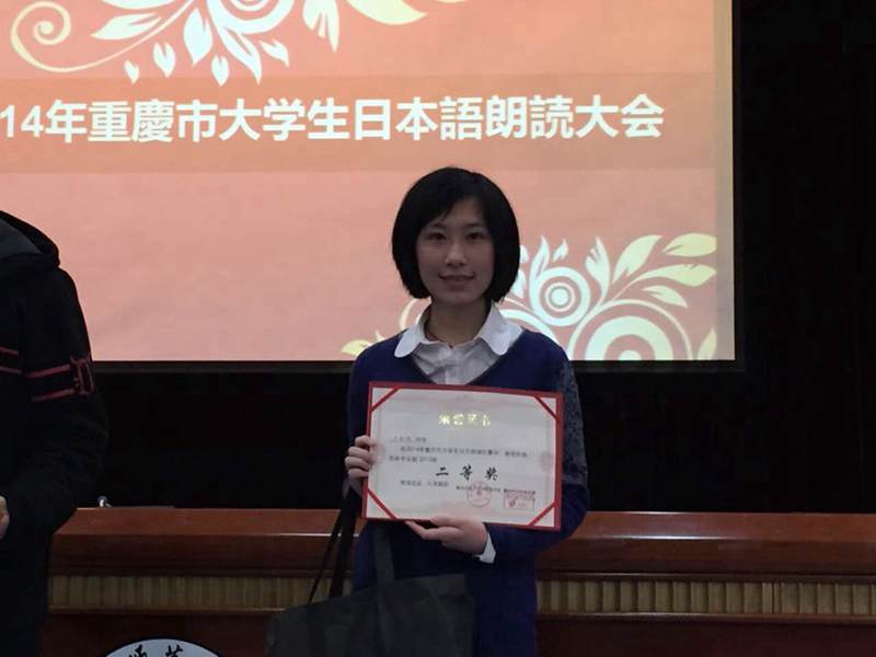 2014年“重庆市老员工日文朗诵比赛” 于11月29日上午9:30—下午5:00,在大学城虎溪校区重庆师范大学凯撒报告厅举行。我系派出的2012级、2013级各一名选手分别喜获特等奖和二等奖。