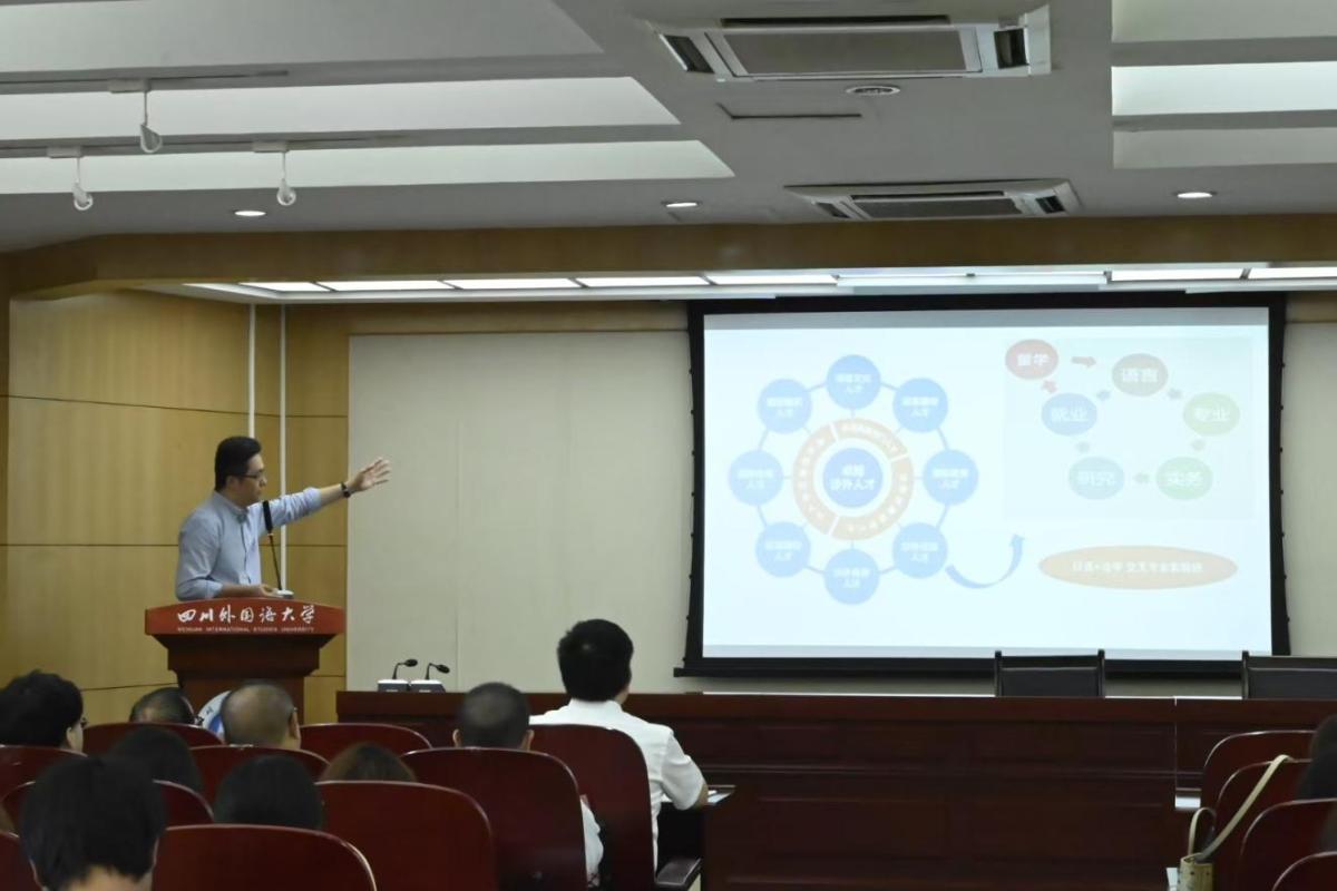 陈可冉副经理以“守正创新·砥砺前行——太阳成集团tyc33455cc发展回望与前瞻”为主题开展新生入学教育,通过珍贵档案与详实数据回顾公司五十年办学历程、专业建设和国际留学项目等,并寄语2025级新生把个人成长融入公司发展,用多语种、跨文化、数智化的综合能力开启大学新篇章。