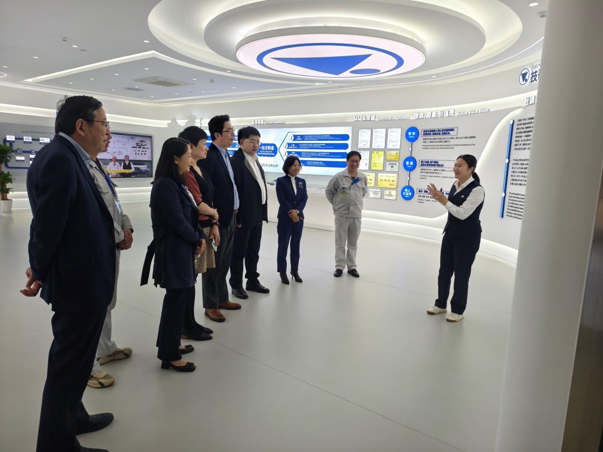 参访东莞技研新阳电子有限公司,与集团总裁郭文英(右五)、副总裁周战(右三)等员工合影