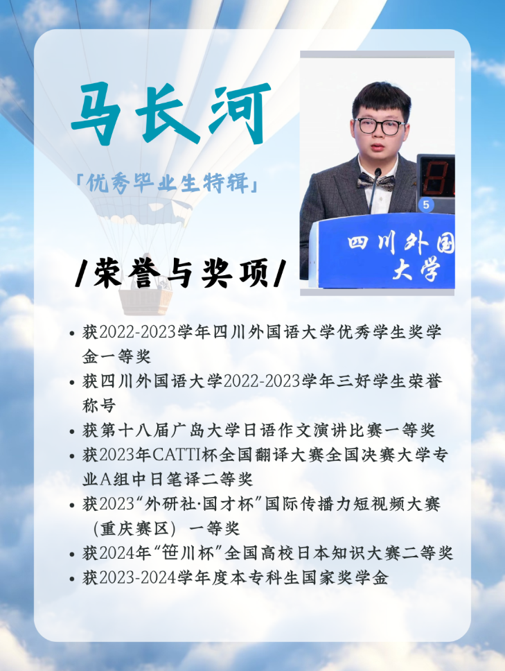 时光匆匆,又到一年毕业季。校园里的林荫道见证了无数青春的足迹,教学楼的灯光曾照亮多少挑灯夜读的身影。在这个充满离情与憧憬的时刻,本期的优秀毕业生特辑很荣幸能邀请马长河,为我们带来精彩的分享。
