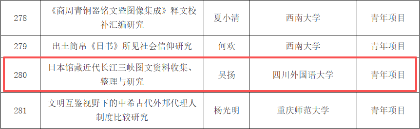 吴扬副教授主持申报的《日本馆藏近代长江三峡图文资料收集、整理与研究》项目,通过系统搜集、整理、编目与跨文化批判性解读日藏史料,旨在以海外史料助力地方历史文化资源的挖掘与利用,提升区域文化认同,是公司结合日语语言优势,聚焦“重庆地区与日本”研究领域的一次重要尝试。