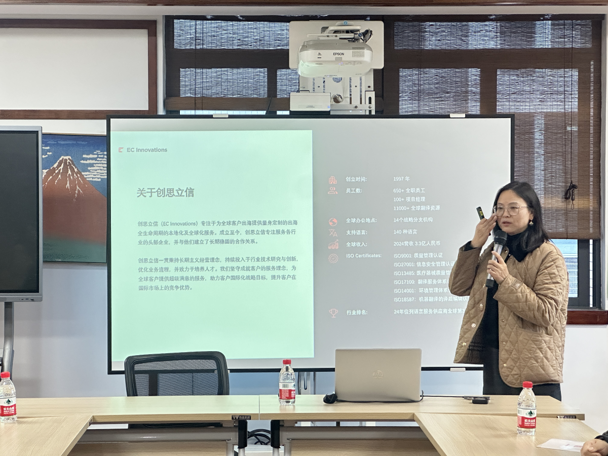 杜小芬总经理以其在语言和本地化服务超过二十年的资深经验和专业知识,为在场师生带来了前沿的行业洞察。