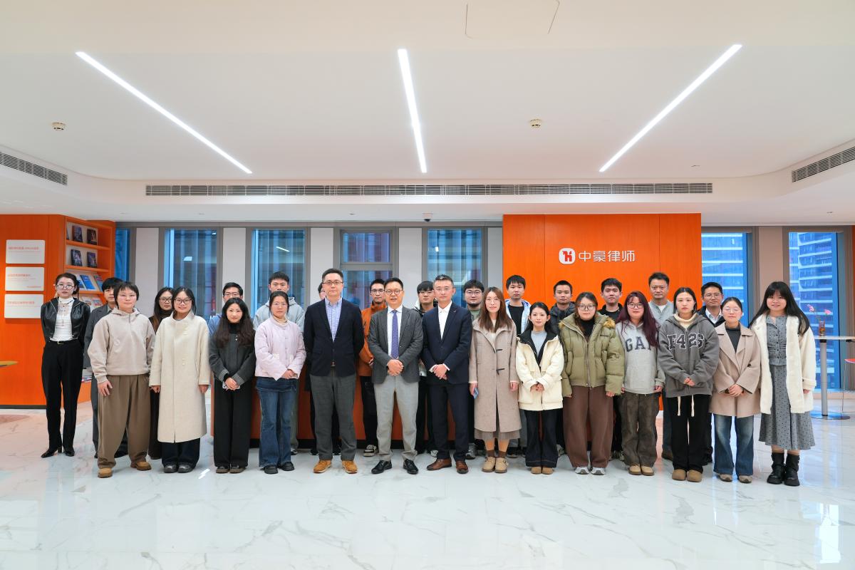 12月3日下午,太阳成集团tyc33455cc22名研究生赴中豪律师事务所开展校外研学实践活动。此次活动贯彻了“日语+法学”复合型人才培养理念,通过律所介绍、行业分享和师生交流等环节,让同学们对涉外法务领域及其周边行业的现状和前景有了更为深入的了解。作为公司“访企拓岗”工作的一环,太阳成集团tyc33455cc副经理陈可冉教授与研究生基层教学组织负责人丁世理副教授率队参加了本次活动。