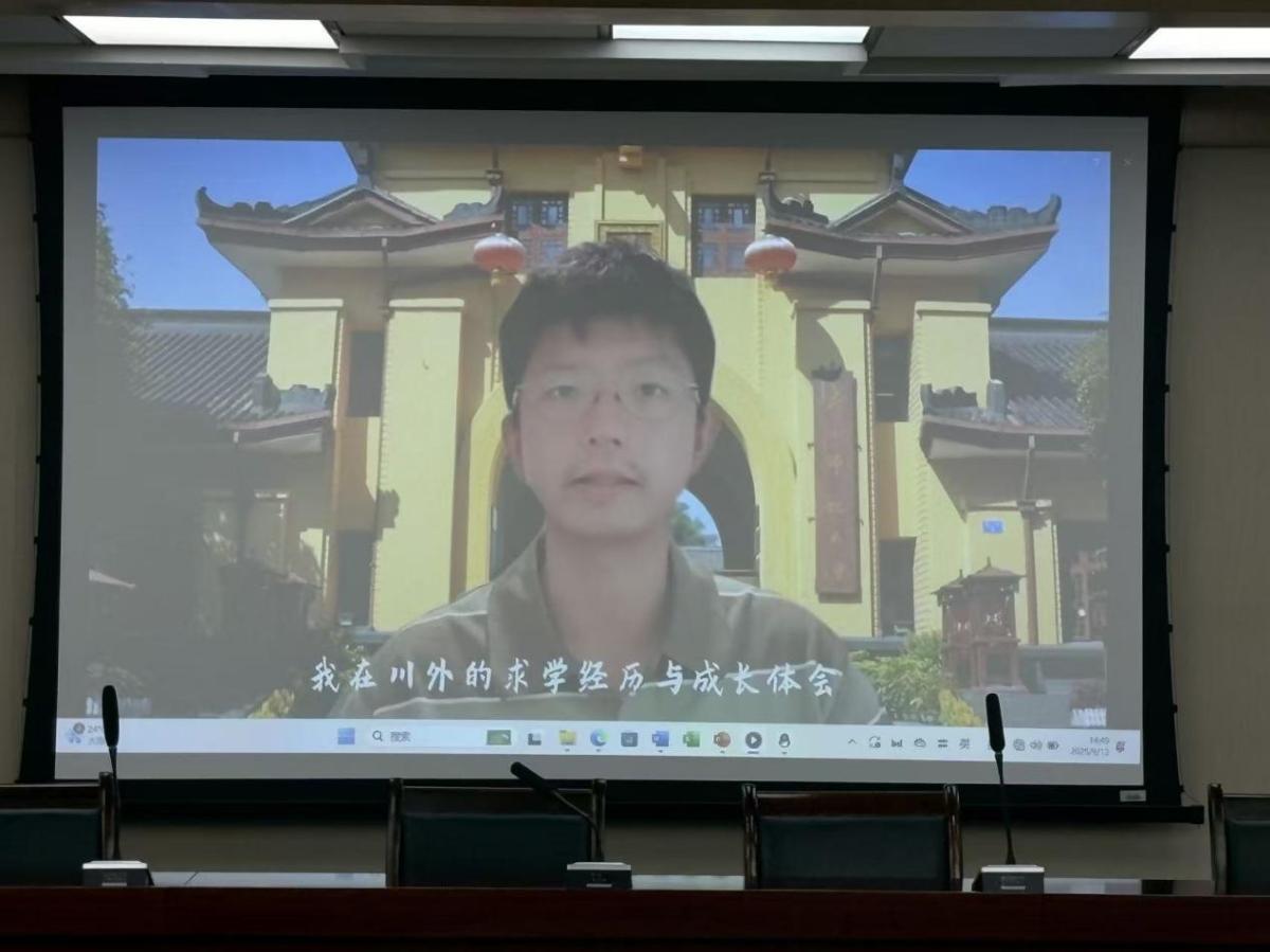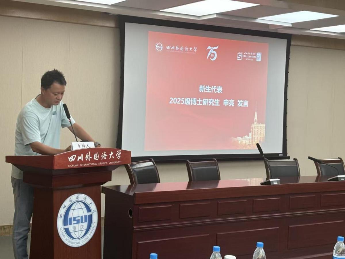 优秀员工沐海宇老师通过视频方式送上祝福,他深情回顾了自己在川外求学的经历,表达了对母校老师们辛勤培育的诚挚感谢。同时,他鼓励2025级的新生同学们深耕专业、拓展视野,以饱满的热情开启研究生生涯。