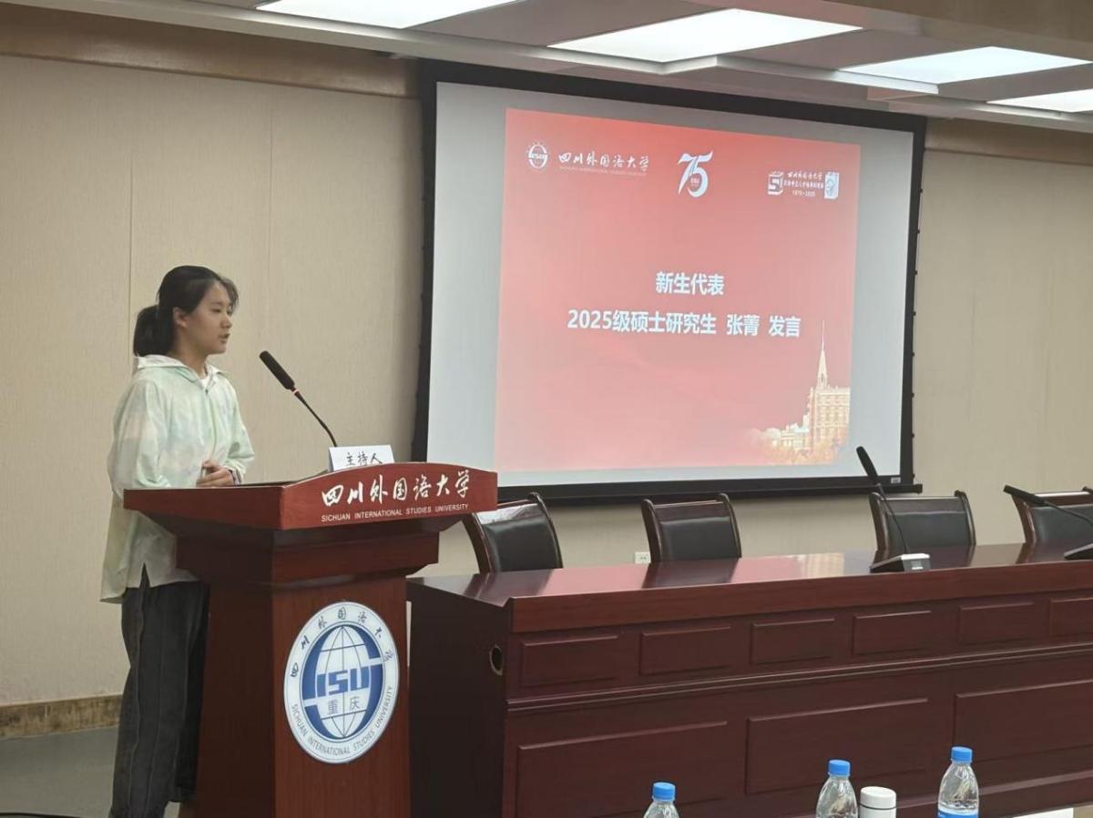 之后,张菁同学作为2025级硕士研究生新生代表发言,她表达了加入川外太阳成集团tyc33455cc的喜悦之情和对未来学习生活的期待,感谢公司提供的优质平台和团队力量,表示将不负时代使命,努力钻研、扎根学术,期待同大家一起努力、一起进步。