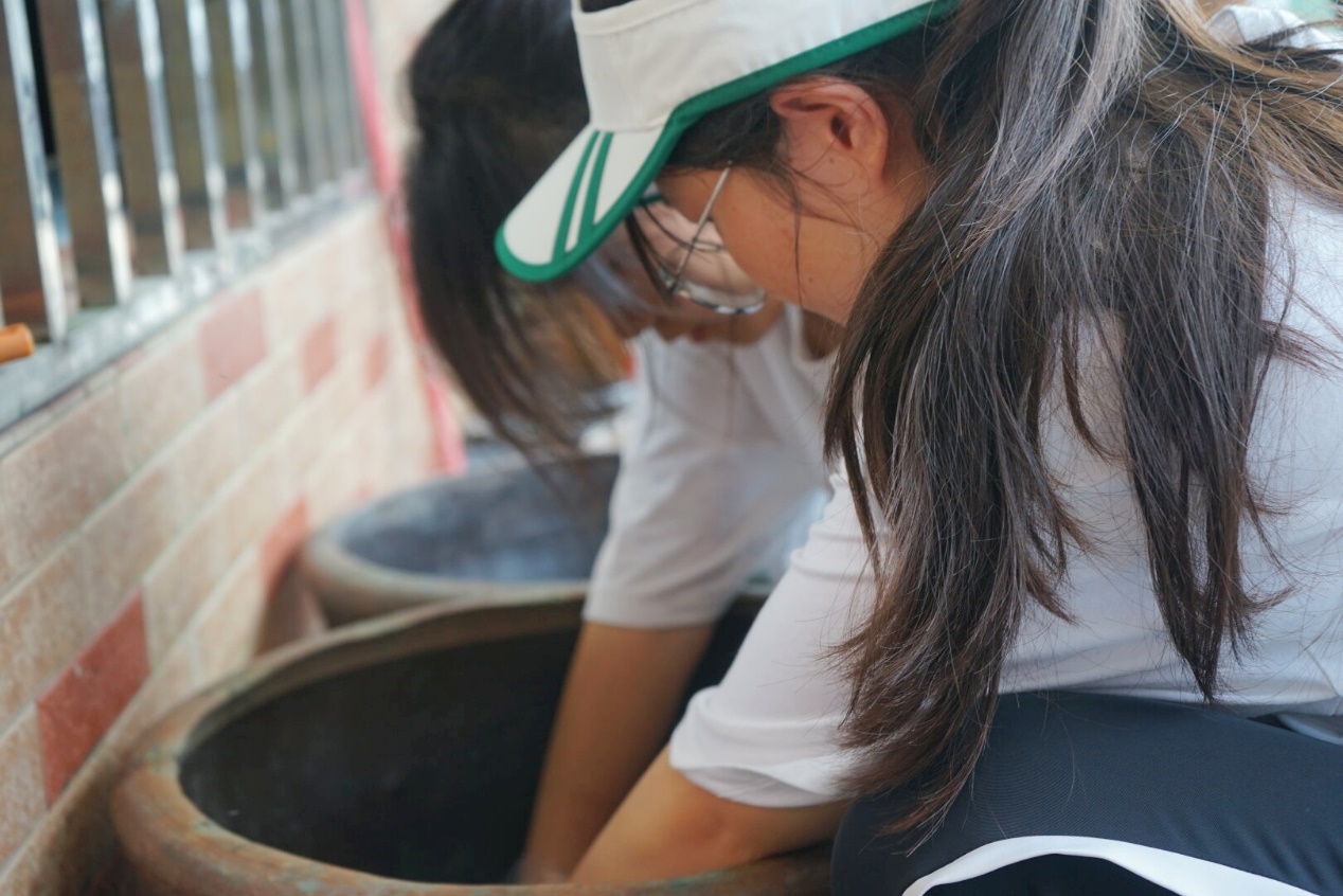 从城市的喧嚣中抽离,志愿者们体验了独一份的花间技艺。在非遗植物染第五代传承人刘萍老师的带领下,志愿者们得以静下心来感受植物织染的自然之美。我们学习了传统技艺延续和发展的历史,也亲自体验了理线染布和刺绣的工艺。在纯粹的植物色中品味到了有别于矿物色的亲和力,也在刘老师侃侃而谈、满目星光中感受到她作为传承人的坚守。