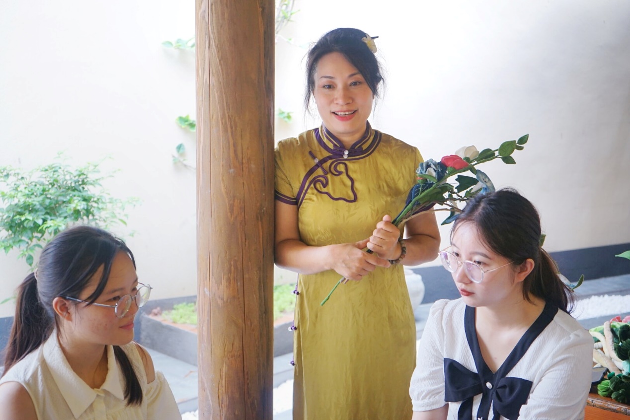 此次志愿者们入住的民宿——“谷雨清舎”是村里的第一家民宿,我们在和老板谷先生的交谈中得知谷先生正是为了旅游业的蓬勃发展才下定决心开办了村里的第一间民宿。经营着近两百亩花田的非遗传承人刘萍女士等在乡创业的实业家,将村民们“留”在了这片希望的田野,共同建设美丽的家乡。由此我们也得以窥见了长虹村的乡村振兴路。