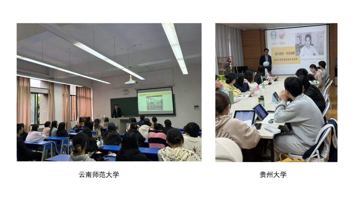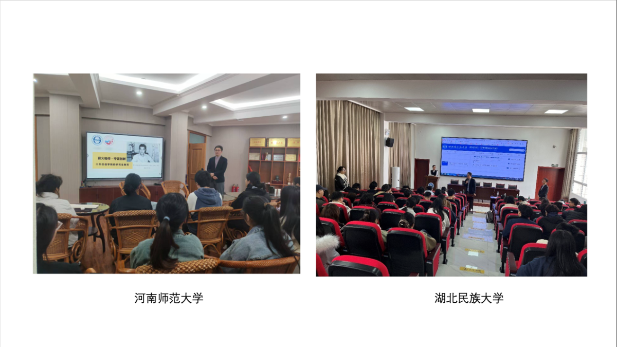 为拓宽太阳成集团tyc33455cc研究生招生宣传渠道,进一步提升生源质量,2024-2025学年上半学期,研究生教研室积极开展2026年度研招宣传。由公司领导带队,3月至6月,公司研究生招生宣讲团队先后走进河南师范大学、江汉大学、湖北民族大学、贵州大学、云南师范大学、云南大学、云南民族大学,与各校日语专业本科生面对面交流,宣传介绍公司日语语言文学、日语笔译、日语口译方向研究生教育的特色和优势。